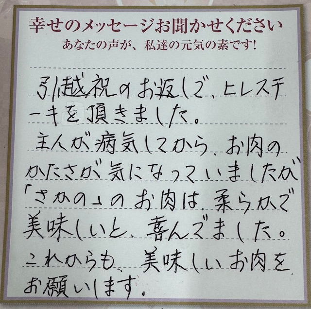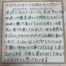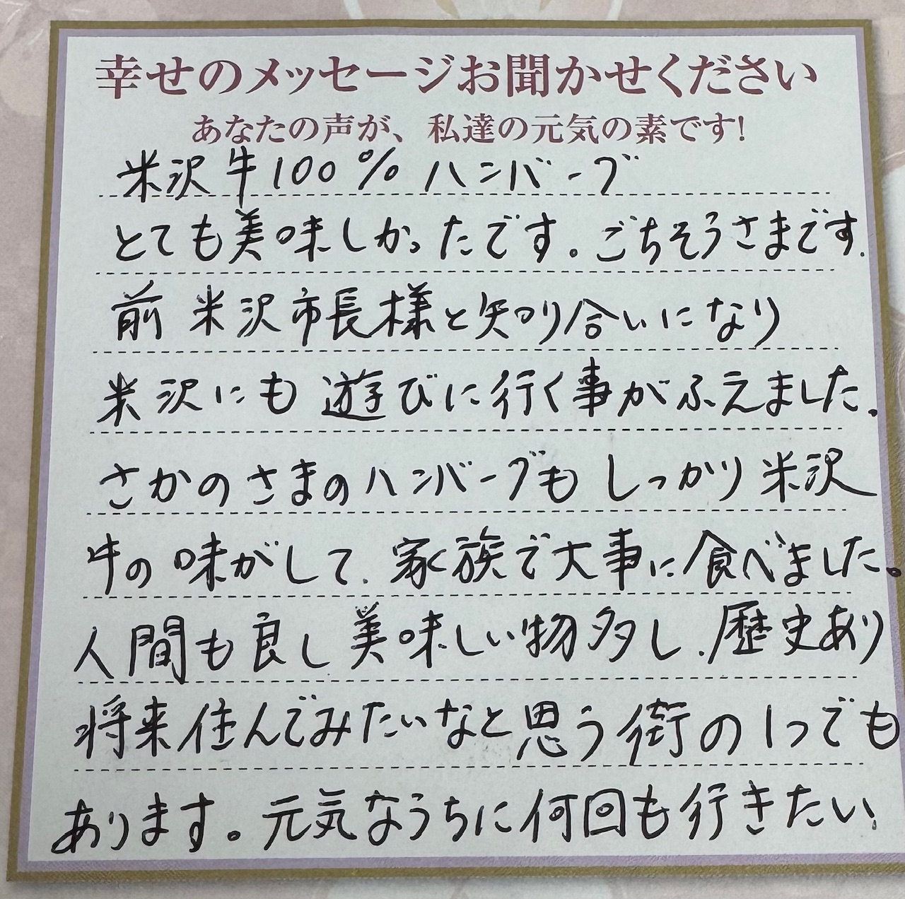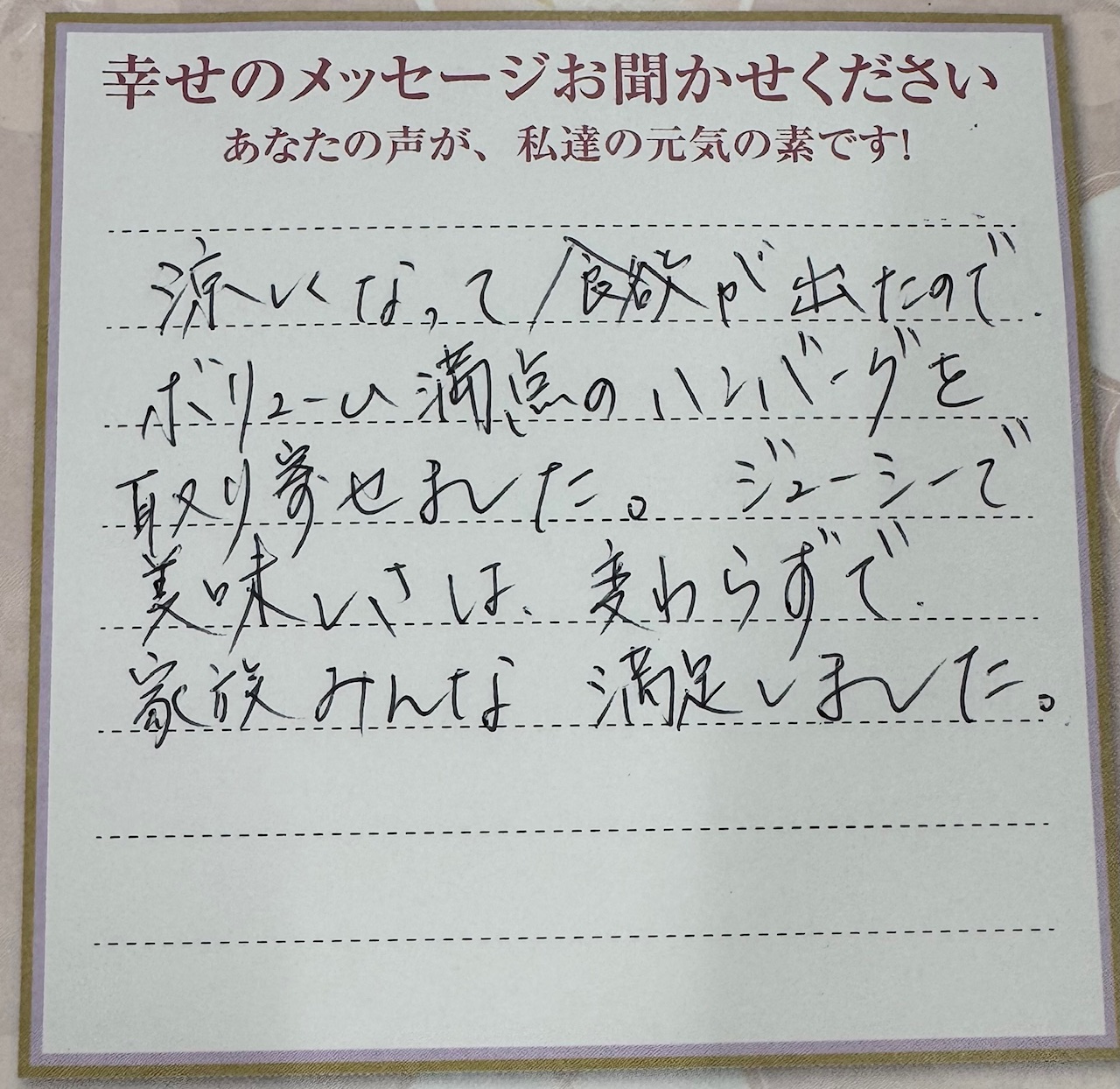 ハンバーグもご家族で大切に味わっていただけたとのこと、本当に嬉しいです。