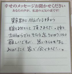 元気のなかった両親も力が出ると大変喜んでおりました。