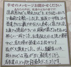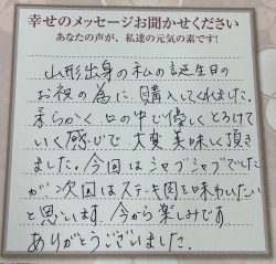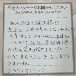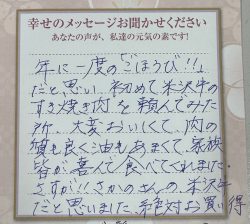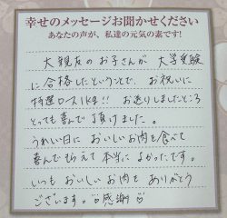 うれしい日においしいお肉を食べて喜んでもらえて本当に、よかったです。