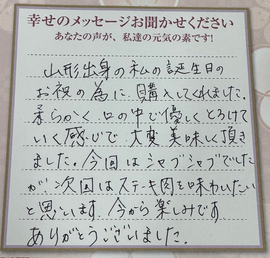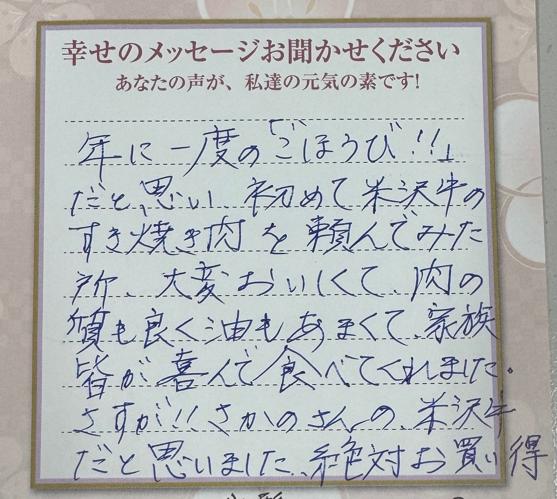 年に一度のごほうびに、初めての米沢牛をお選びいただけたなんて本当に光栄です!!