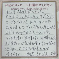 そして「さかの」でのお食事をきっかけに米沢牛のファンになっていただけたとのこと、本当に光栄です。