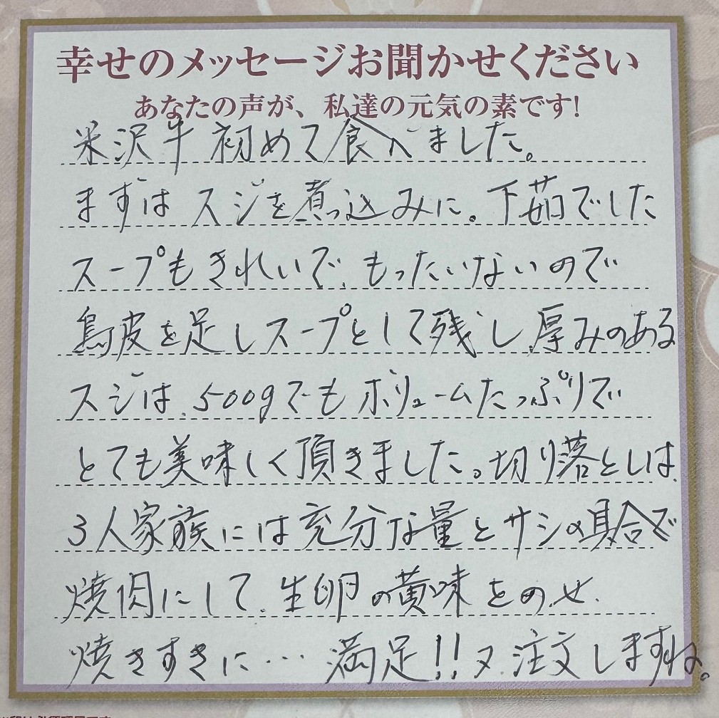 ネット通販でも米沢牛を楽しんでいただけて何よりです。
