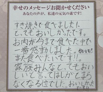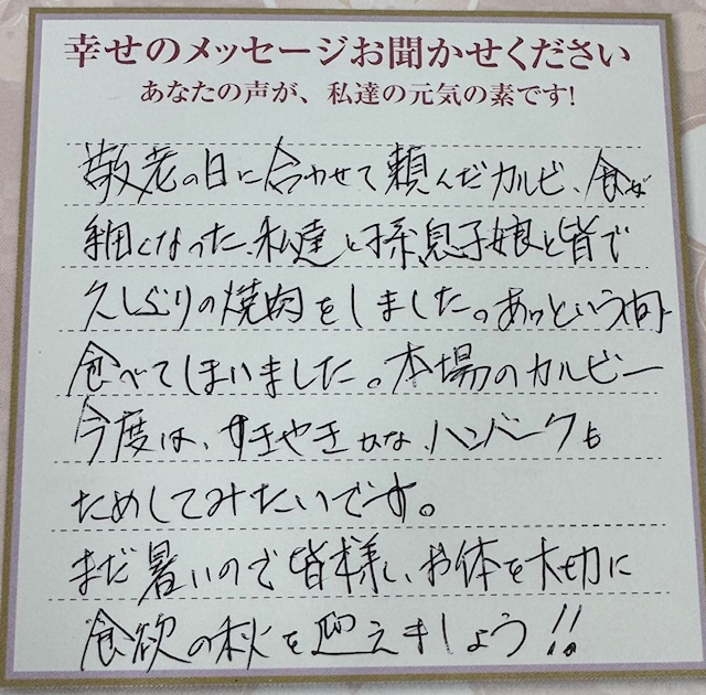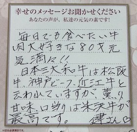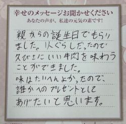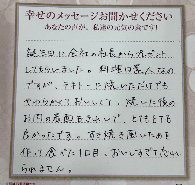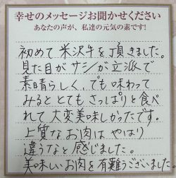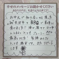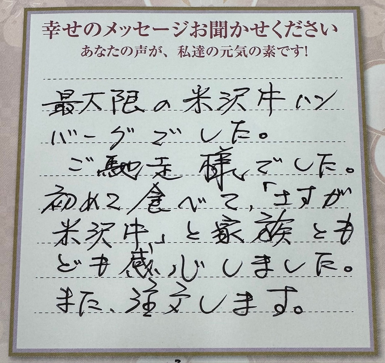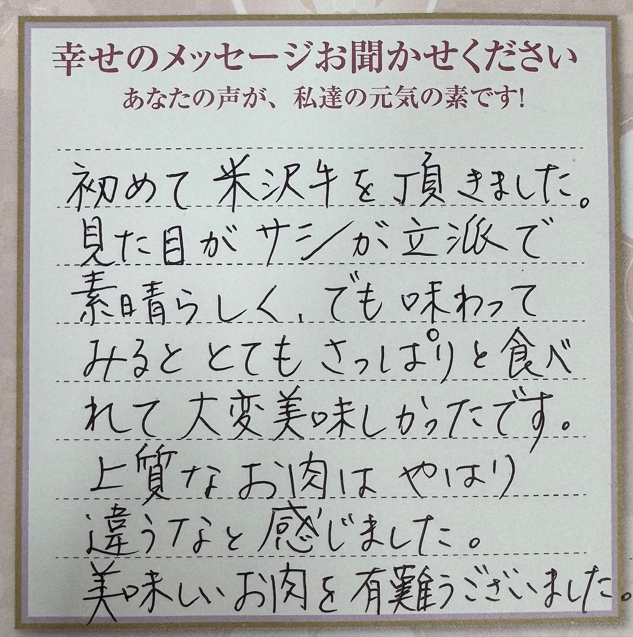 これからもお元気で、ぜひまた米沢牛をお楽しみくださいませ。