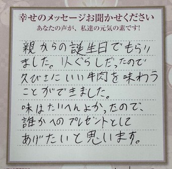 お誕生日にご両親から美味しいお肉のプレゼント、素敵ですね!