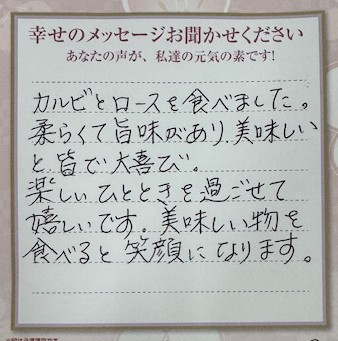 ご家族みんなで焼肉を楽しんでいただけたなんて、とっても嬉しいです!