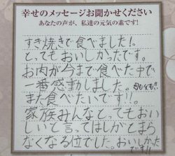 お肉が今まで食べた中で一番感動しました。母も父も!!