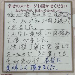 「こんなに美味しいお肉は初めて」とのお言葉や、