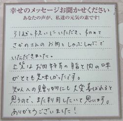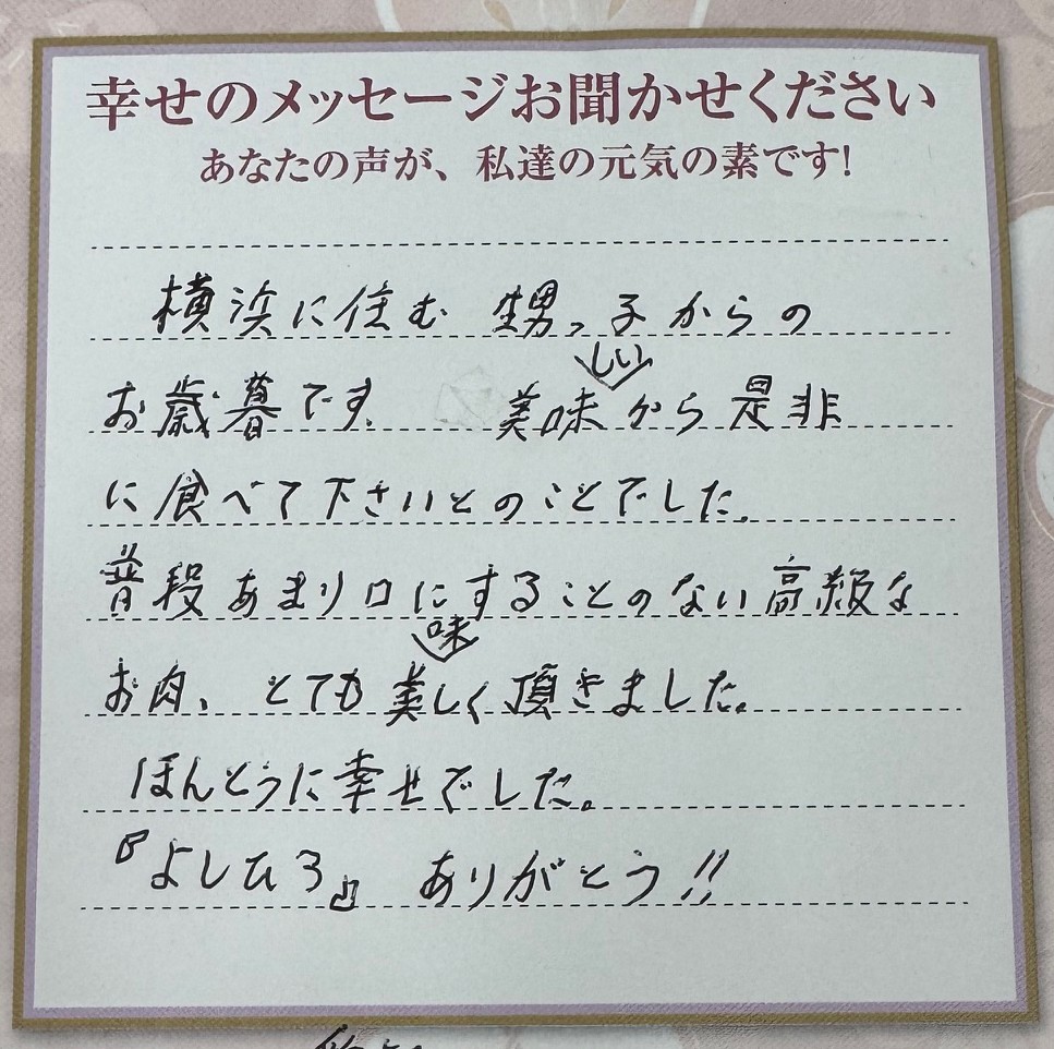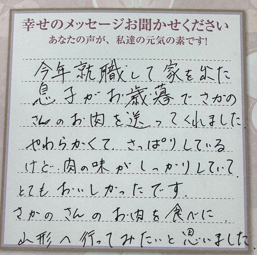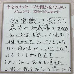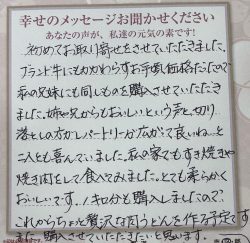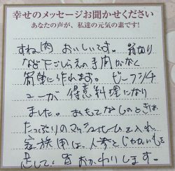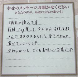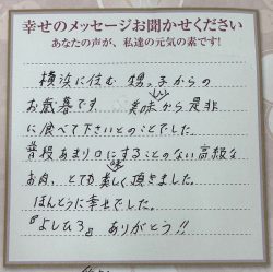これからも美味しいお肉を楽しみにしています。