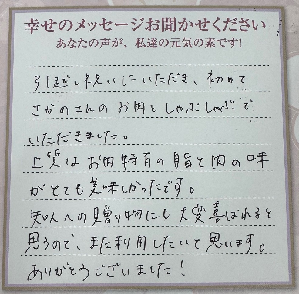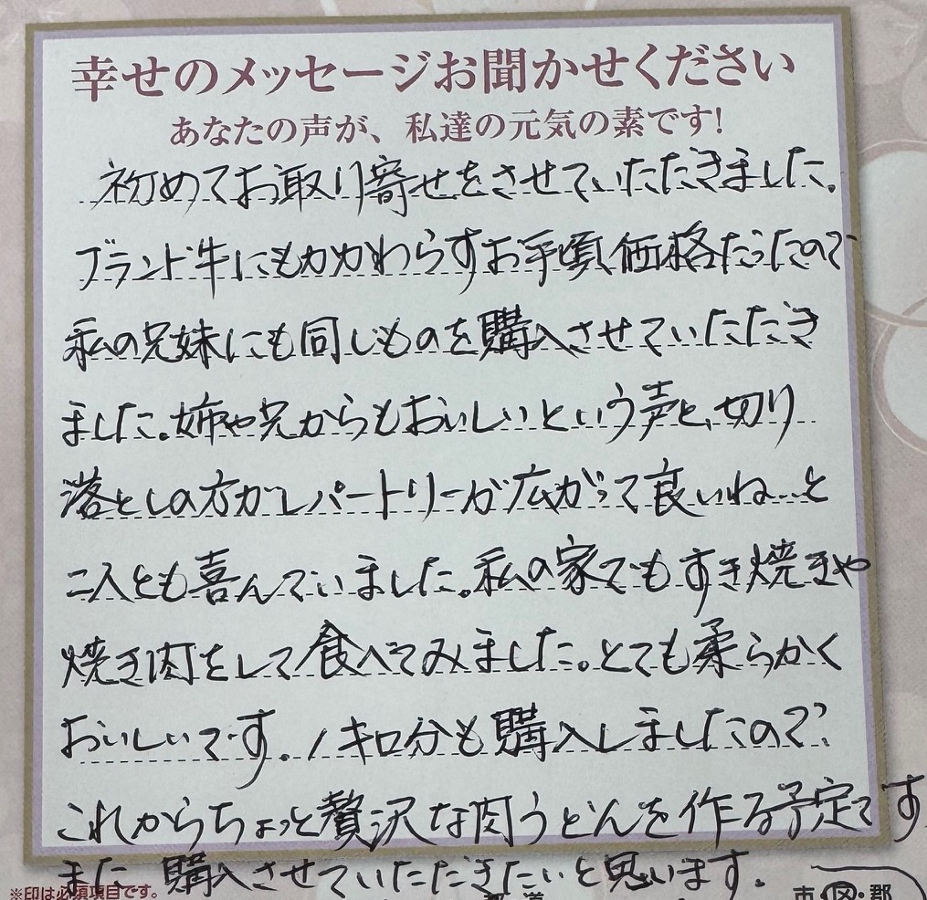 すき焼きで幸せな時間を過ごしていただけて本当に嬉しいです。