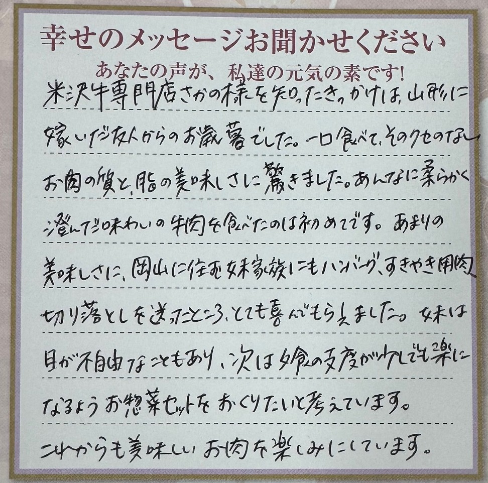 ぜひ次の機会も、米沢牛で楽しい食卓を囲んでくださいね♪