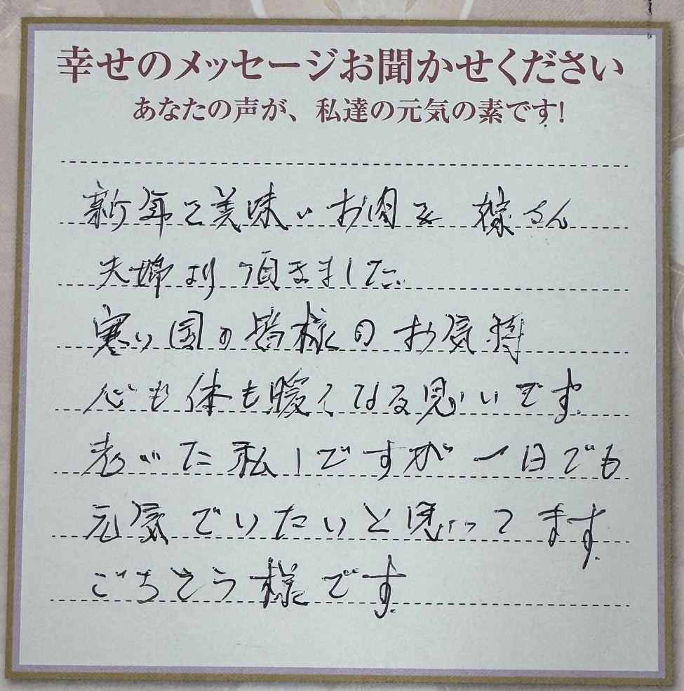 心あたたまるメッセージをありがとうございます!